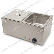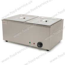 Аппарат для подогрева готовых блюд GoodFood BM2 настольный используется для разогрева пищи паром, обеспечивая более мягкий и равномерный нагрев. Корпус, крышка и емкость изготовлены из нержавеющей стали.   Вместо базовой комплектации гастроемкостей размером GN 1/2 – 2 шт можно установить GN 1/3 – 3 шт. или GN 1/1 – 1 шт. Максимальная глубина гастроемкостей 150 мм. Наполнение водой вручную. Паровой мармит сливного крана нет. Автоматический термостат. Регулировка температуры воды от 30 до 110 °С. Мощность тена 1,5кВт. Напряжение 220В/50Гц. ...