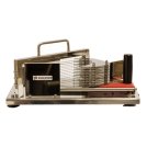 Используется для нарезки томатов на кружочки для сандвичей, гамбургеров, салатов и т.д. Слайсер также подходит для нарезки шампиньонов, огурцов , картофеля, хорошо режет даже мягкие перезревшие томаты. Выполнена из нержавеющей стали Режущие рамы с ножами из нержавеющей стали ..