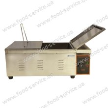 Фритюрница-чебуречница GoodFood EF12 может использоваться как фритюрница и как чебуречница. Общий объем 12л, полезный объем 5 - 9л. Корпус, крышка, панель управления, ванна и корзина из пищевой нержавеющей стали. Регулировка температуры нагрева масла 60-200С. Датчик перегрева.  В..