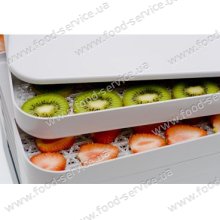 В комплект входят 6 стандартных лотков, выполненных из качественного пищевого BPA-Free пластика, при этом площадь дегидратора может быть легко расширена до 12 таких лотков без ущерба качеству сушки.