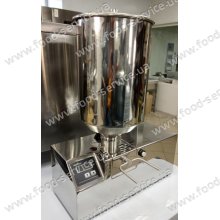 Дозатор-наполнитель приводится в действие датчиком движения. Имеет электронное управление настройки времени наполнения (дозировка в граммах зависит от установленного времени и типа начинки). Корпус и бункер дозатора выполнены из нержавеющей стали. Прижим с нагрузкой-позволяет начинать такую воздушную начинку, как взбитые сливки.