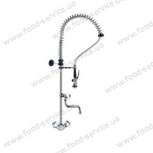 Смеситель с душирующим устройством с изливом применяется для установки на моечные ванны в кафе, барах, ресторанах, цехах и других местах для мойки посуды инвентаря и продуктов.