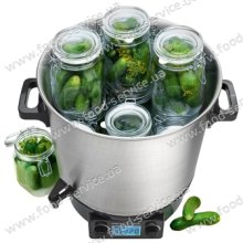 Емкость бака: 27 литров (примерно 14 банок) • Корпус из нержавеющей стали • Закрытое днище бака • Закрытый электронагревательный элемент из нержавеющей стали • Плавнорегулируемая температура (1°-100°С) • ЖК-дисплей (голубая подсветка) • Отображение времени по установочному таймеру, выбранной температуры и реальной температуры • Встроенный сливной кран для удобного розлива, например, глинтвейна, пунша или других горячих напитков • Вставные решётки • Пластмассовые ручки, теплоизолированные • Защита от перегрева • * Цвет или оттенок издел...
