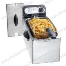 Корпус изготовлен из нержавеющей стали.   Объем: 6 л. Габариты корзины: 185х215х105 мм. Температура +60...+200 °C. Съемная штампованная ванна. Боковые ручки для переноски. ..