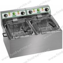 материал - пищевая нержавеющая сталь; выдвижные корзины из хромированной проволоки; ручки корзины и крышек - из термоизолирующего пластика; тэн - из нержавеющей стали; объем ванны 8 + 8 л; максимальная температура 190°C; верхний блок и тэн - съемные;  производительность 16 кг/ч; двойной термостат. ...