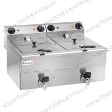 Электрическая фритюрница настольного типа FC100 изготовлена из нержавеющей стали. Имеет 2 секции с крышками, оборудована кранами для слива. Работает в температурном диапазоне от 50 до 180С. Оснащена термостатом безопасности. Предусмотрена холодная зона. Световые индикаторы работы оборудования. Мощность аппарата составляет 3,5кВт+3,5кВт. Съемные нагревательные элементы с защитным микровыключателем....