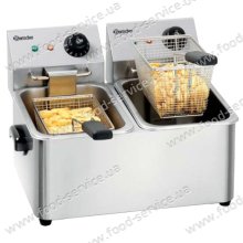 Фритюрница настольная имеет две ванны объемом 8л каждая и две корзины.