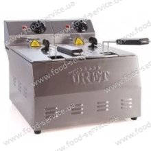 Фритюрница является профессиональной электрический фритюрницей с рабочим объемом 8 литров, имеет 2 ванные, без сливного крана. Электрическая мощность - 2 х 3.2 кВт. Модель оснащена терморегуляторами. Корпус выполнен из нержавеющей стали.