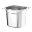 •    Гастроемкости базируются на модуле 1/6 (наружные размеры 162х176 мм) и соответствуют международному стандарту DIN 66075 по выпуску профессионального кухонного оборудования. •    Пищевые емкости могут быть использованы на всех предприятиях общественного питания..
