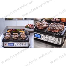 Верхняя пластина откидывается на 180°, что позволяет использовать обе пластины одновременно в качестве жарочой поверхности для приготовления различных продуктов (например, мяса и овощей одновременно). Антипригарное покрытие пластин. В комплекте две пластины: 1шт.-гладкая, 1шт.-рефленая. Полностью съемные пластины. Их можно мыть в посудомоечной машине. Максимальная температура 230°t. Независимая регулировка температуры каждой пластины. ЖК-дисплей Турбо-режим. Таймер. Функция автоотключения. Поддон для жира. Бесплатное приложения на смартфон с рецептами. Компактный, стильный, современный дизайн. Гриль предназначен для бытового и полупрофессионального использования....