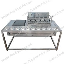 Габариты ШхВхГ 1800х1060х900мм (высота гриля до жарочной поверхности 850мм).