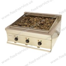 Гриль газовый лавовый Rauder CLS-E имеет три зоны нагрева, на открытой базе. Корпус изготовлен из нержавеющей стали, съемные решетки - из стали. Лавовый гриль позволяет приготовить мясо, рыбу или овощи на особых лавовых камнях, которые равномерно распределяют нагрев и впитывают жир. Подобная технология придает блюдам точно такой же вкус, который они приобрели бы на костре при этом продукт сохраняет все витамины и минеральные вещества. Мягкий режим обработки сохраняет мясо сочным и ароматным, покрывая его аппетитным румянцем. Принцип действия лава-гриля основан на нагреве лавового камня, расположенного на опорной решетке, изготовленной из нержавеющей стали. Чугунная решетка, предназначенная для приготовления продукта, устанавливается над разогретым камнем. Данная решетка находится в наклонном положении, что дает возможность жиру свободно стекать в специальный контейнер, расположенный в основании гриля.