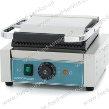 Гриль контактный GoodFood ECG10 BEIGE однопостовый с одним регулятором мощности и пружиной для фиксирования верхней плиты в любом положении.   Верхняя и нижняя плиты с ребристой поверхностью. Температура от 50 до 300°С. Мощность 1,8 кВт. Размеры верхней рабочей поверхност..