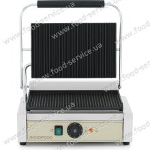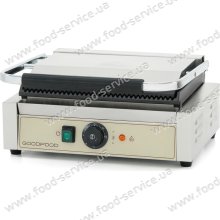 Гриль контактный GoodFood ECG10 BEIGE однопостовый с одним регулятором мощности и пружиной для фиксирования верхней плиты в любом положении.   Верхняя и нижняя плиты с ребристой поверхностью. Температура от 50 до 300°С. Мощность 1,8 кВт. Размеры верхней рабочей поверхност..
