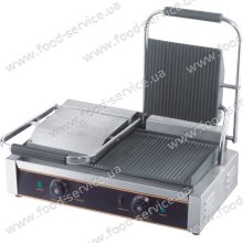 Двухпостовый электрический контактный гриль с рифленой жарочной поверхностью изготовленной из чугуна 2х214х214 мм + 475х230мм.