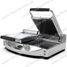 Гриль контактный Spidocook SP020PR двухпостовый (2 рабочие зоны нагрева) с двумя термостатами и гладкой нижней и верхней рифленой жарочной поверхностью, которые изготовлены из стеклокерамики.