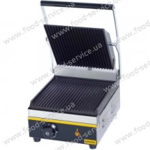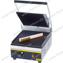 Электрический контактный гриль Stalgast Gredil 742010 с ребристой поверхностью. Грили контактные Hendi предназначены для жарки мяса, сосисок, бутербродов, рыбы, а также яичниц, омлетов, блинов и др:   • терморегулятор позволяет устанавливать температуру от 0 до 300ºС;   • нагрев осуществляется одновременно сверху и снизу; • корпус выполнен из нержавеющей стали;   • рабочие поверхности чугунные с керамическим покрытием ;   • ручки выполнены из термостойкого материала; • съемный поддон для сбора лишнего жира; • давление верхней рабочей поверхности регулируется прижимной пружиной, что обеспечивает адаптацию к различной толщине приготовляемого продукта; • Световой индикатор нагрева •  Индикатор сети ON/OFF  • комплектуются щеткой для легкой очистки