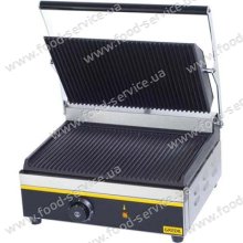 Электрический контактный гриль  Stalgast Gredil 742030 с ребристой поверхностью.   Грили контактные предназначены для жарки мяса, сосисок, бутербродов, рыбы, а также яичниц, омлетов, блинов и др:   • терморегулятор позволяет устанавливать температуру от 0 до 300ºС;   • нагрев осуществляется одновременно сверху и снизу; • корпус выполнен из нержавеющей стали;   • рабочие поверхности чугунные с керамическим покрытием ;   • ручки выполнены из термостойкого материала; • съемный поддон для сбора лишнего жира; • давление верхней рабочей поверхности регулируется прижимной пружиной, что обеспечивает адаптацию к различной толщине приготовляемого продукта; • Световой индикатор нагрева •  Индикатор сети ON/OFF  • комплектуются щеткой для легкой очистки