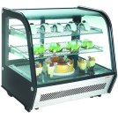 Холодильная витрина Frosty RTW-120B-5 настольная. Корпус изготовлен из нержавеющей стали и поликарбоната.   Объем 120л. Цифровой регулятор температуры и дисплей. Ночью 0...+12°C. Двойные стеклопакеты. Прямое стекло. Раздвижная дверь. Верхняя LED подсветка...