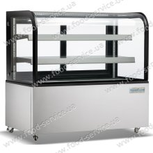 Холодильная витрина GoodFood FW370R нержавеющая сталь кондитерская напольная горизонтальная с 2-мя стеклянными полками и гнутым стеклом.