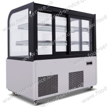Холодильная витрина GoodFood FW370R нержавеющая сталь кондитерская напольная горизонтальная с 2-мя стеклянными полками и гнутым стеклом. Корпус изготовлен из нержавеющей стали и прозрачного стекла.   Верхняя светодиодная (LED) подсветка и подсветка полок. Цифровая панель управления. Раздвижная дверь. Сопротивления колесика. Напряжение: 220В/50Гц. Мощность: 0,480 кВт. ...