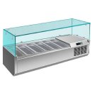 Витрина холодильная Berg G-VRX 1400/330 (прямое стекло) под 6хGN1/4 (в комплект не входят) является практически идеальным вариантом для пиццерий и предназначены для кратковременного хранения и демонстрации, предварительно охлажденных продуктов (салатов, закусок, гарниров)..