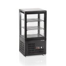 Настольная витрина демонстрационная. Стеклопакет со всех сторон. Регулируемые полки-решетки. Стеклянная дверь. Внутреннее светодиодное освещение. Черный дизайн. Вентилируемое охлаждение. Регулируемые ножки. Электронный термостат. ..