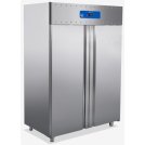 Шкаф кухонный холодильный Frosty FGN-1400TN однокамерный. Ножки и корпус внутри и снаружи изготовлены из нержавеющей стали.   Общий объем 1392л. Полезный объем 1177л. 2 двери. 2 замка. Внутренняя LED подсветка. 6 регулируемых решетчатых полок с ПВХ покрытием G..