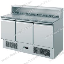 Холодильный стол Amitek AK903P предназначен для использования в кафе, барах, ресторанах для охлаждения готовых блюд. 3 двери, нержавеющая столешница. Встроенная саладетта с надстройкой на 8 гастроемкостей GN1/6 (в комплект не входят!!!) Стол изготовлен полностью с нержавеющей стали. Толщина теплоизоляции - 40мм. Регулируемые по высоте ножки. Электронный блок управления. Статическое охлаждение....