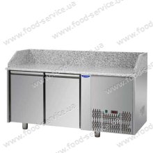 стол изготовлен с нержавеющей стали AISI 304 (18/10) гранитная столешница с бортом с 3-х сторон пластиковые полки регулируемые, 4 направляющих из нержавеющей стали авторазморозка, испарение конденсата температура t-2+8°С (t внешн. среды до 43°С) две распашные дверцы охлаждаемый прилавок для ингридиентов пиццы (0/+8°С) GN 1/4 нейтральный ящик. электронное управление ...