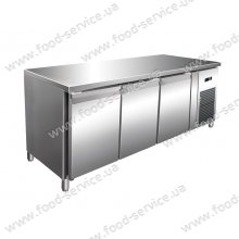 Стол имеет объем 417 л, 3 двери, оснащен 3-мя решетчатыми полками 330х430 мм. Внутренняя и внешняя отделка - нержавеющая сталь. Рабочий диапазон температуры: -2...+8˚С. Автоматическая разморозка, хладагент R134A, динамическое охлаждение. Электронная панель управления.