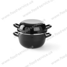 Эмалированная кастрюля объемом 5л для мидий, черного цвета.