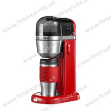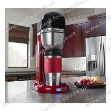 Персональная кофеварка 5KCM0402EER от KitchenAid предназначена для приготовления ароматного кофе прямо  в прилагаемую термокружку или любую чашку на ваш выбор. Компактные размеры, стильный узнаваемый дизайн, простота в эксплуатации делают этот аппарат незаменимым на кухне истинных кофеманов. Кружка-термос имеет объем 540 мл и дополнена яркой силиконовой вставкой. Для приготовления напитка необходимо всего-лишь наполнить водой съемную емкость, добавить молотый кофе в фильтр и нажать кнопку "ON". Вам не нужно использовать одноразовые бумажные фильтры - кофеварка оснащена съемным постоянным фильтром с позолоченной сеткой. Оптимальная технология варки кофе с электронным контролем температуры нагревает воду до необходимой температуры для получения ароматного кофе. Также Вы можете приобрести персональную кофеварку KitchenAid  5KCM0402 черного цвета.