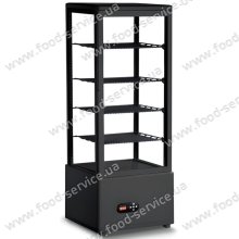 Шкаф холодильный Frosty RT-78B-1 black настольный.   Цифровой регулятор температуры и дисплей. Ночью 0...+12°C. Стекло с 4-х сторон. Двойные стеклопакеты. Замок. 3 окрашенные решетчатые полки: 355х305 мм. Полки регулируются по высоте. Верхняя LED подсветка..