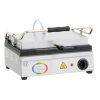 Имеет небольшую рабочую поверхность, что позволяет поместить в него до 2-3-х шаурм (хот-догов) для подогрева. Верхняя поверхность регулируется по наклону, посередине для этого предусмотрена ручка. Продукт прижимается всем весом верхней рабочей поверхности. Для сбора жира предусмотрен съемный лоток,который одновременно защищает корпус и панель управления гриля от попадания на них масла или продукта.
