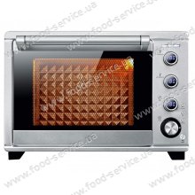Электрическая конвекционная печь Gemlux GL-OR-1845 имеет компактные размеры, небольшой вес и может быть с успехом использована как полноценная замена электрической духовке и на малогабаритной городской кухне, и на даче. Оборудование имеет прочный и гигиеничный корпус из нержавеющей стали и оригинальное электронное управление. Температура верхнего и нижнего нагревательных элементов и время приготовления регулируются вращением трех ручек. Заданные значения параметров выводятся на три ЖК-дисплея, которые производитель разместил на тех же ручках. Выглядит это весьма эффектно и необычно.