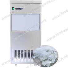 Лед используется для напитков и прекрасно измельчается во льдом измельчителе. Корпус изготовлен из нержавеющей стали.   Производительность 90кг/сутки. Объем бункера 25кг. Регулировка цикла изготовления льда 5-50 мин. Цифровой дисплей. Подача воды: подключение к во..