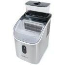 Льдогенератор GoodFood IM20NIMAN наливной, работает по замкнутому циклу, не требует подключения к воде и канализации, с воздушным охлаждением компрессора.   Корпус выполнен из нержавеющей стали и чёрного пластика.   Производительность 20кг гранулированного льда в сутки. ..