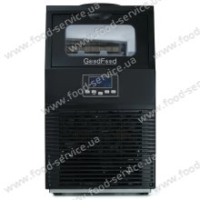Ледогенератор GoodFood IM15CB с воздушным охлаждением.   Корпус выполнен из нержавеющей стали.   Производительность 15кг кубикового льда в сутки. Сверху находится дополнительный резервуар для воды или вода подается через бутыль наливным способом, работающим по замкну..