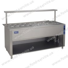 Мармит работает по принципу паровой бани. Под гастроемкостями находится ванна, в которую подается вода. В конструкции мармита предусмотрено подключение водоснабжения и канализации для слива воды и промывки мармита. Это удобно так как не нужно ведром с водой заполнять ванну и тратить силы и время. На панели управления, после подачи воды в ванную, задается необходимая температура продукта, после чего вода нагревается и паром подогревает емкости с продуктами. Такая система подогрева особенно удобна так как гарниры не пригорают и не перегреваются. Температур...