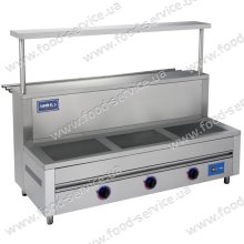 Мармит Кий-В М 1Б-3-1600 М Модерн может входить в комплект линий раздач или использоваться отдельно для подогрева и поддержки в разогретом состоянии заранее приготовленных блюд в столовых, бистро и кафе самообслуживания. Корпус и направляющие для разносов выполнены из нержавеющей стали, конфорки из чугуна.   Размер конфорки 415х295мм. Под конфорками имеется выдвижной поддон для стока случайно разлитых продуктов.   Изделие поставляется с передним защитным стеклом и полками изготовленными из стекла.   Опции: установка фронтального стекла; изготовление 2-х полок; раздвижная дверь со стороны персонала.   Запчасти всегда налицо. Быстрый и качественный сервис.   Напряжение 380В. Мощность 9кВт.   Размеры без направляющих и полки (д/ш/у) 1600х710х850мм. Габаритные размеры (д/ш/у) 1600х1030х1290мм. Размеры упаковки (д/ш/у) 1670х1090х1340мм.   Ступенчатые переключатели обеспечивают удобное переключение режимов нагрева конфорок.   Площадь и мощность конфорок позволяют использовать посуду большого диаметра и объема.   Монтаж мармита ...