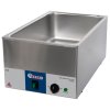 Мармит Hendi 238905 работает по принципу паровой бани - вода нагревается ТЭНом и при нагревании образуется пар, который подогревает вместимое гастроемкости. Для контроля температуры подогрева предусмотрен термодатчик с проградуированой ручкой со стороны обслуживающего персонала. Возможна различная комбинация гастроемкостей.