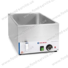 Мармит Hendi 238912 работает по принципу паровой бани - вода нагревается ТЭНом и при нагревании образуется пар, который подогревает вместимое гастроемкости. Для контроля температуры подогрева предусмотрен термодатчик с проградуированой ручкой со стороны обслуживающего персонала. Возможна различная комбинация гастроемкостей.