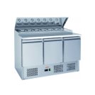 3-х дверный холодильный стол-саладетта Forcold G-PS900-FC выполнен из нержавеющей стали. Имеет отсек для гастроемкостей с телескопичсеской крышкой, вместимость 5хGN1/6 глубиной до 150 мм (гастроемкости - опция) 1 решетчатая полка GN 1/1 с пластиковым покрытием в каждом отделении. Темпера..