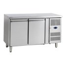 2 двери. Агрегат расположен сбоку. Объем 282л. 1 решетчатая полка GN1/1 с пластиковым покрытием в каждом отделении. Температура: -2...+8°С. Внутренняя и наружная отделка стола из нержавеющей стали AISI201. Толщина термоизоляции 60мм. Динамическое охлаждение. Электр..