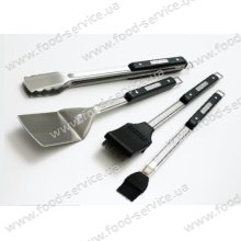Broil King представляет профессиональный набор инструментов барбекю. Набор состоит из 4-ех инструментов: лопатка, щипцы, силиконовая кисточка, жесткая металлическая щетка. Изготовлены инструменты из высококачественной нержавеющей стали толщиной 1,8мм, рукоятки - из термостойкого бакелита, что позволяет безопасно работать при очень высоких температурах.