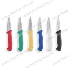 Ножи HACCP для чистки овощей - набор из 6 штук. Ручка из полипропилена в соответствии с нормами HACCP. Набор из 6 штук: белый, красный, синий, зеленый, черный и желтый.  Лезвия из листовой стали. Длина лезвия - 90 мм. Длина ножа - 185 мм. ...
