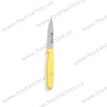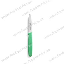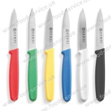 Ножи HACCP для чистки овощей - набор из 6 штук. Ручка из полипропилена в соответствии с нормами HACCP. Набор из 6 штук: белый, красный, синий, зеленый, черный и желтый.  Лезвия из листовой стали. Длина лезвия - 75 мм. Длина ножа - 175 мм. ...