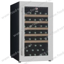 Холодильный шкаф объемом 120л со стеклянной дверью с рамкой из нержавеющей стали, вмещает в себя 44 бутылки по 0,75л и имеет пять полок из проволоки размером 394х455мм.