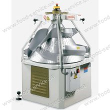 Машина AS1 предназначена для работы с мягким смешанным тестом. Округление теста происходит между конусом и вогнутой стенкой спирали с тефлоновым покрытием, что позволяет добиться образования заготовок круглой формы. На каждой машине установлено два устройства для подсыпания муки, регулируемых до полного закрывания. Этот тестоокруглитель может работать совместно с любым объемным тестоделителем. Машина оснащена колесами и блокирующим механизмом.